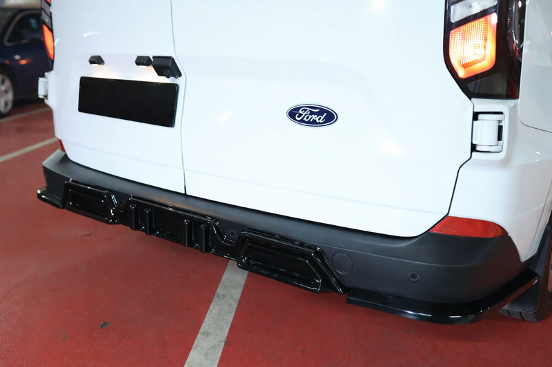 Geef jouw Ford Transit Custom 2024+/VW T7 2025+ een sportieve upgrade met de Rear Side Splitter in glans zwart, 2-delig van Kiedan.